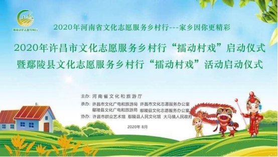 8月12日晚,由河南省文化和旅游厅主办,许昌市文化广电和旅游局、许昌市文化志愿服务办公室、鄢陵县文化广电和旅游局、鄢陵县文化志愿服务办公室承办,许昌市群众艺术馆、鄢陵县人民文化馆、大马镇人民政府协办的2020年河南省文化志愿服务乡村行“擂动村戏”启动仪式在鄢陵县大马镇义女社区隆重举行。许昌市文化广电和旅游局副局长张宏阳、鄢陵县政府副县长靳喜民、许昌市文化广电和旅游局公共文化服务科科长张帆、鄢陵县文化广电和旅游局局长王春彪、鄢陵县文化广电和旅游局副局长麻京乐、鄢陵县大马镇镇长支彦伟、鄢陵县大马镇副镇长张晓茹等参加了启动仪式。