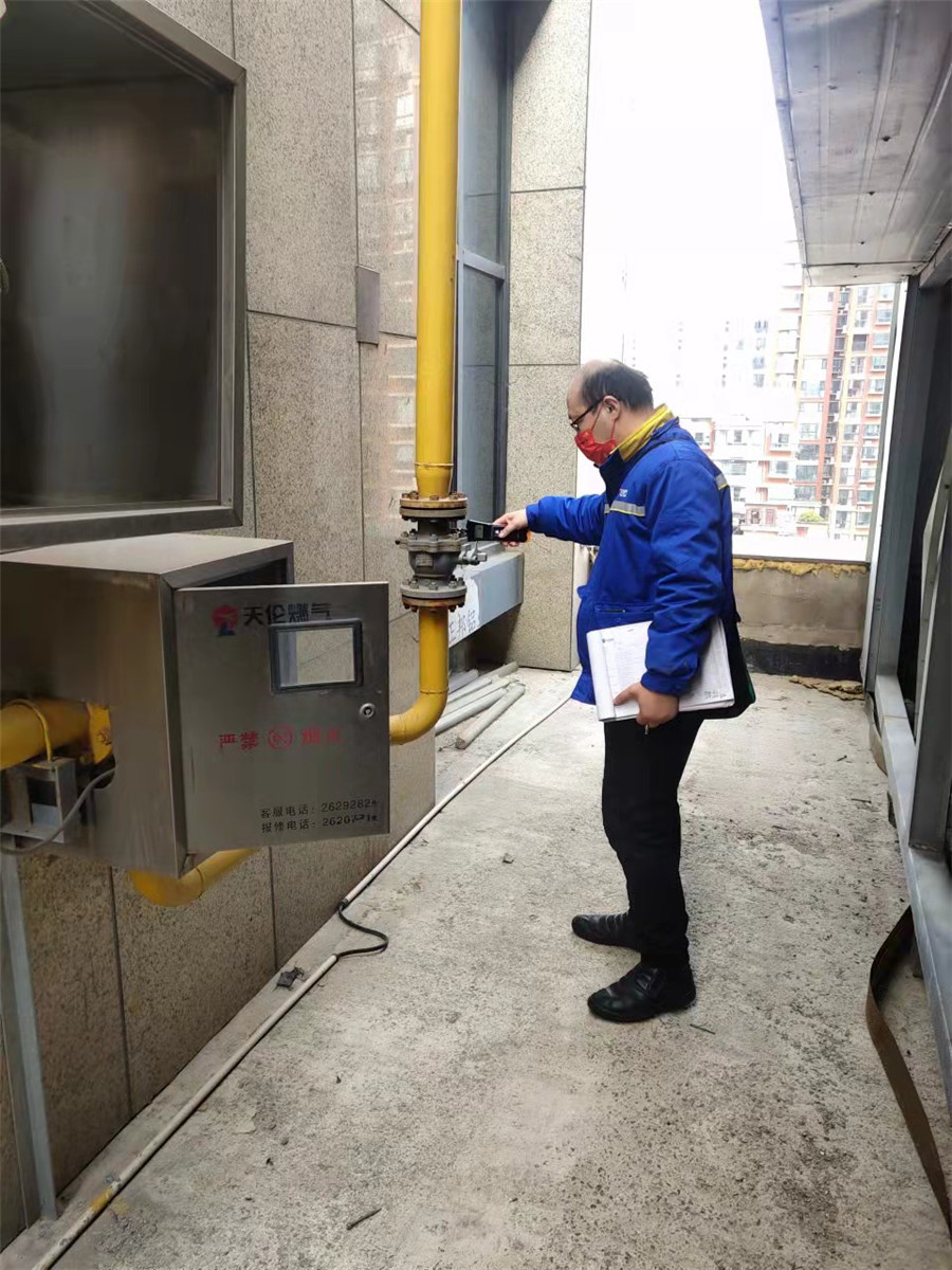 联合检查过程中,检查组共对三鼎华悦大酒店酒店三楼中厨房、面点间、烧腊间,燃气总表、总阀及各管道接口处等重点部位,请天伦燃气公司专业人员用手持燃气泄露报警器进行了全区域细致排查。通过检查,发现三鼎华悦大酒店面点间蒸车燃气接口处有漏气现象,地下多处燃气管道防锈漆大面积脱落的情况。